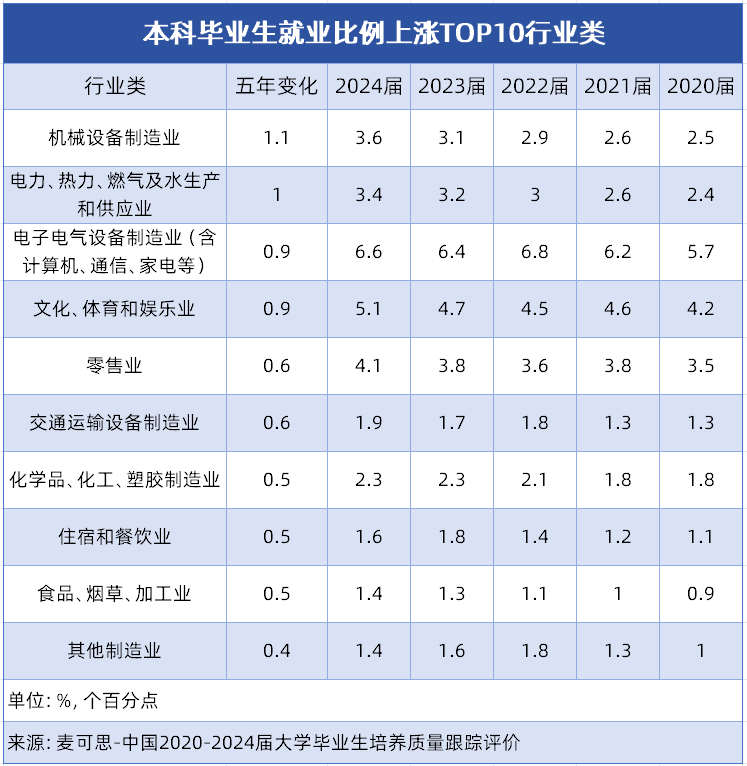 这10个行业类的分布特征明显:制制业相关行业占领从导,涵盖机械设备、电子电气设备等多个细分范畴,这一态势表现了我国制制业转型升级成效,高端配备制制、同时,能源保障、消费升级、平易近生办事等类行业的稳步增加,也为大师将来职业选择供给了更多元标的目的,这些增加显著行业对应的专业范畴,值得沉点关心。